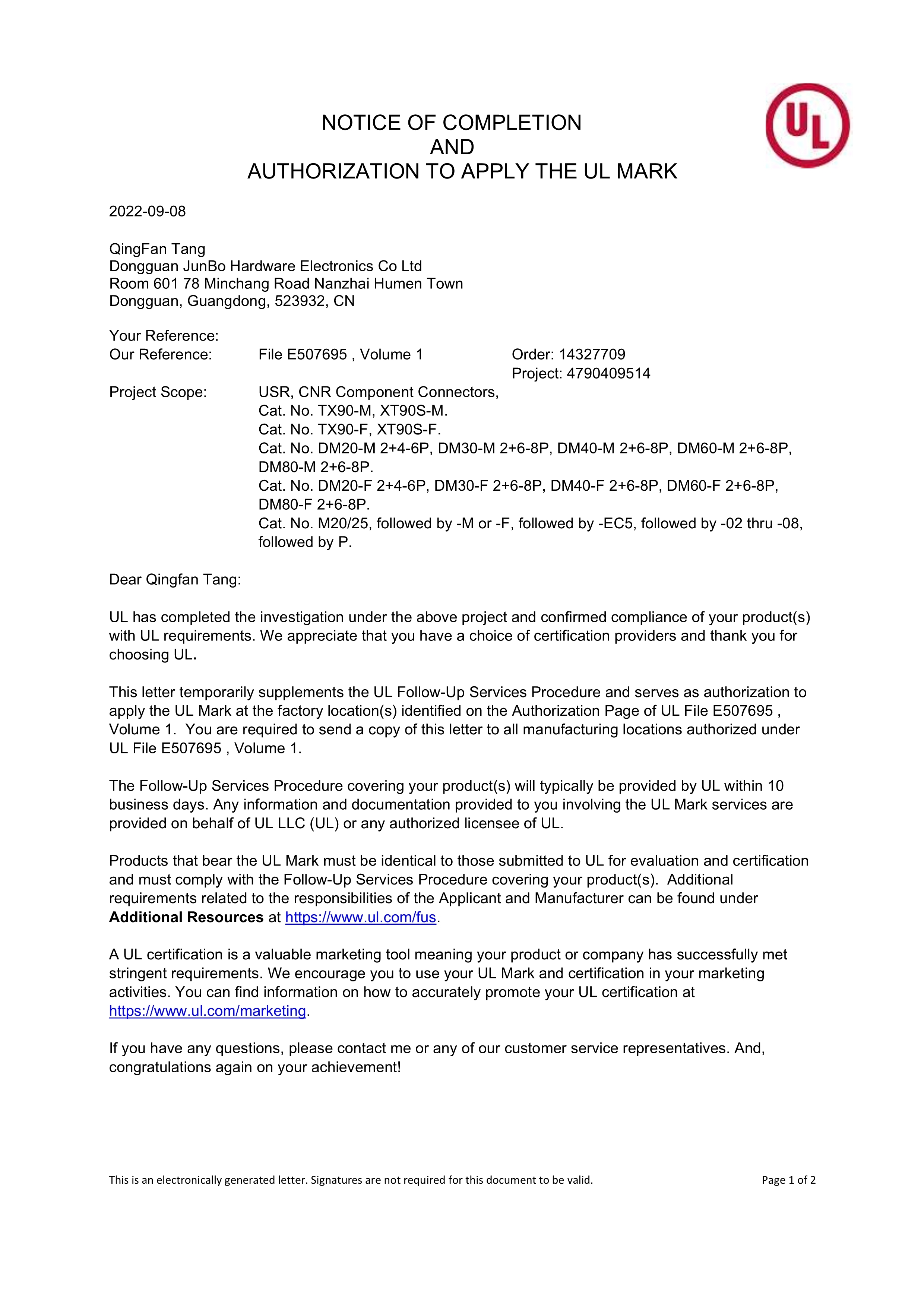 Global certification standards. For 20 years, we have insisted on serving global customers with ultra-high connector standards. Choosing us means choosing a guarantee of integrity!