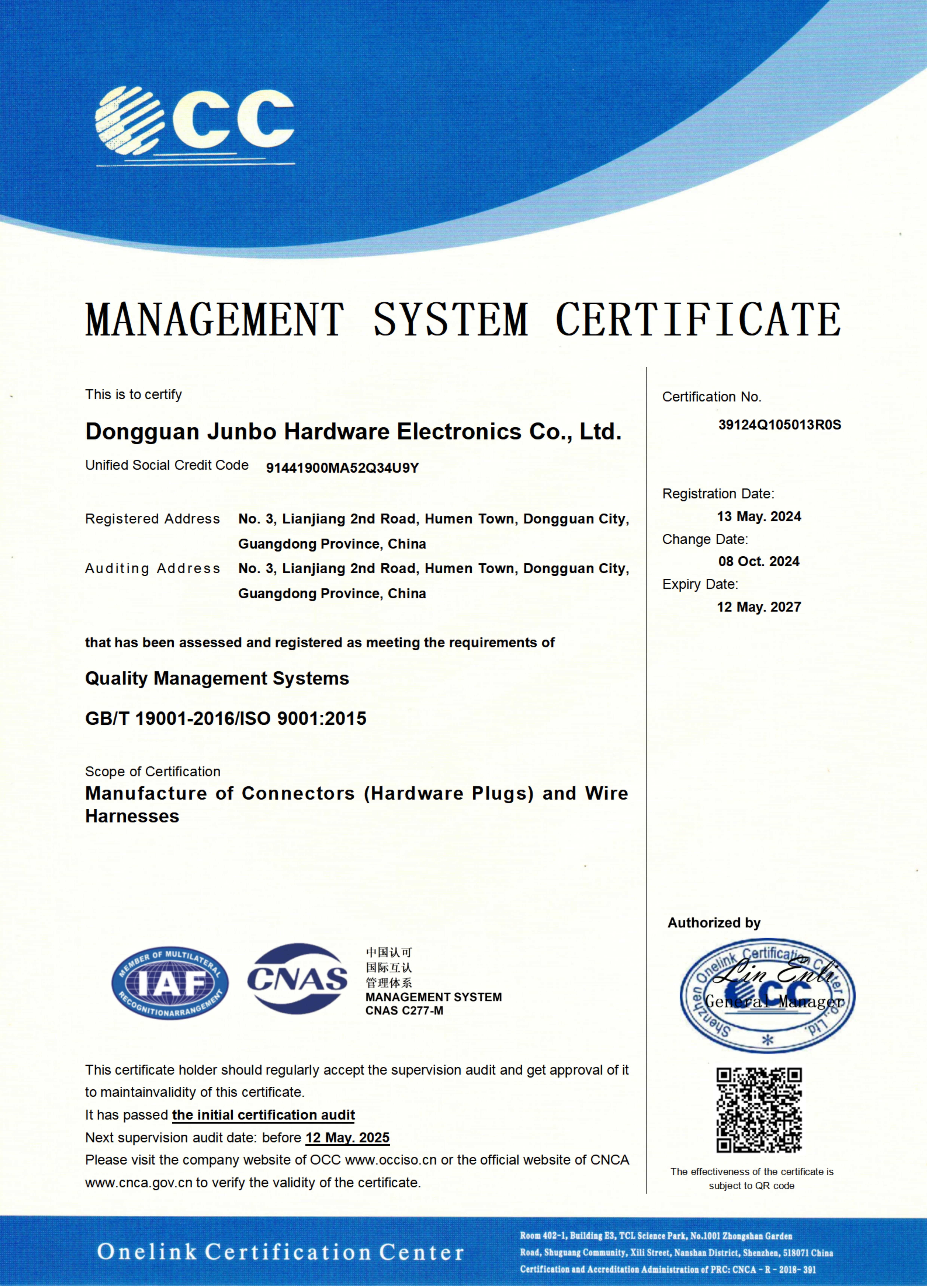 Standard:MANAGEMENT SYSTEM CERTIFICATE